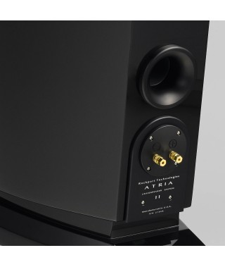 The Atria II’s triple laminated, constrained mode damped enclosure boasts a solid 4 inch thick front baffle and variable section thickness (up to 2½ inches thick), curved side panels which not only create an elegant form, but also endow the enclosure with immense stiffness and minimum resonant signature. The Atria II’s enclosure also features large sweeping chamfers and ever changing baffle dimensions that virtually eliminate diffraction anomalies. Visually stunning, the Atria II’s raked back form and high gloss piano black finish are commensurate with its remarkable sound.
